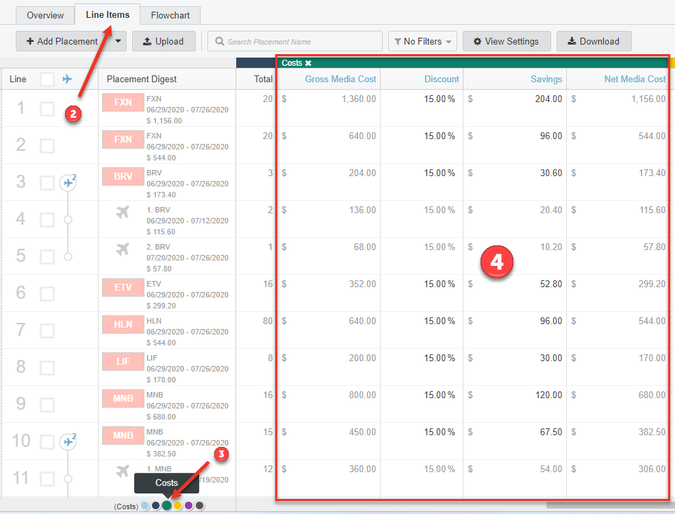 • The columns in this section are set by the media buyer and may vary based on the campaign itemized cost structure.