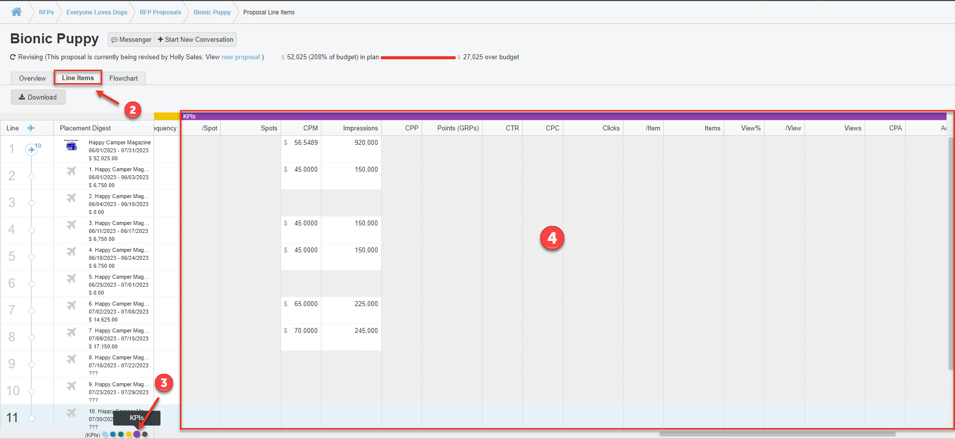Here's how to work with Key Performance Indicators (KPIs) on your proposal (RFP response) in Bionic for Ad Sales.
