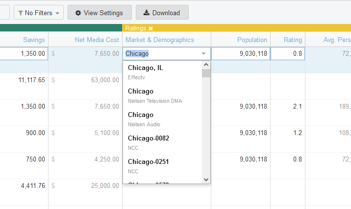 Note: Your market may appear multiple times in the list. That's because Bionic supports multiple ratings providers. Each has their own way of defining market boundaries. See the ratings service label below the market name to choose the correct market.