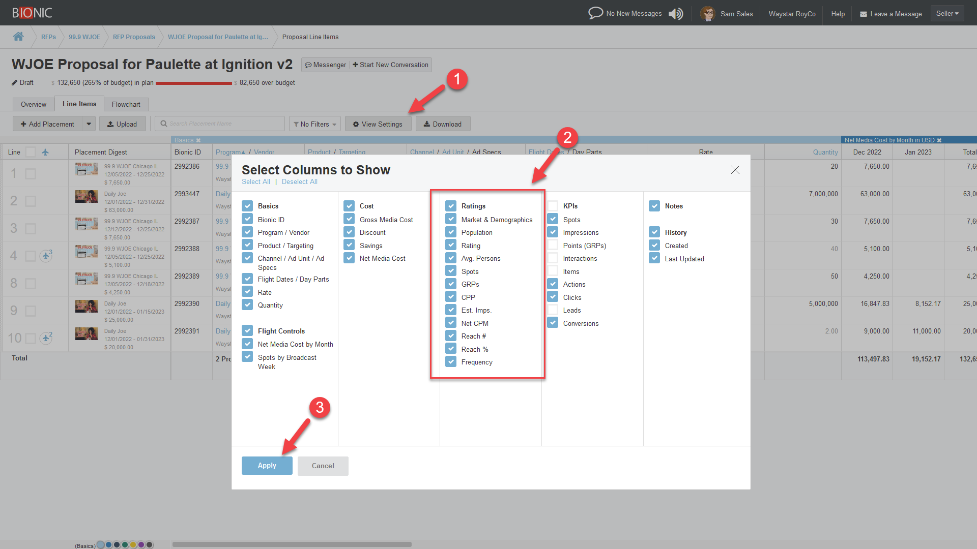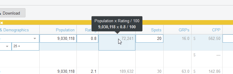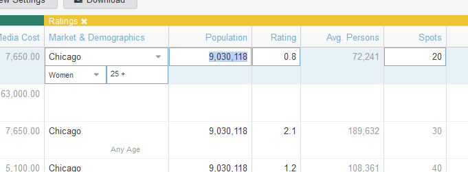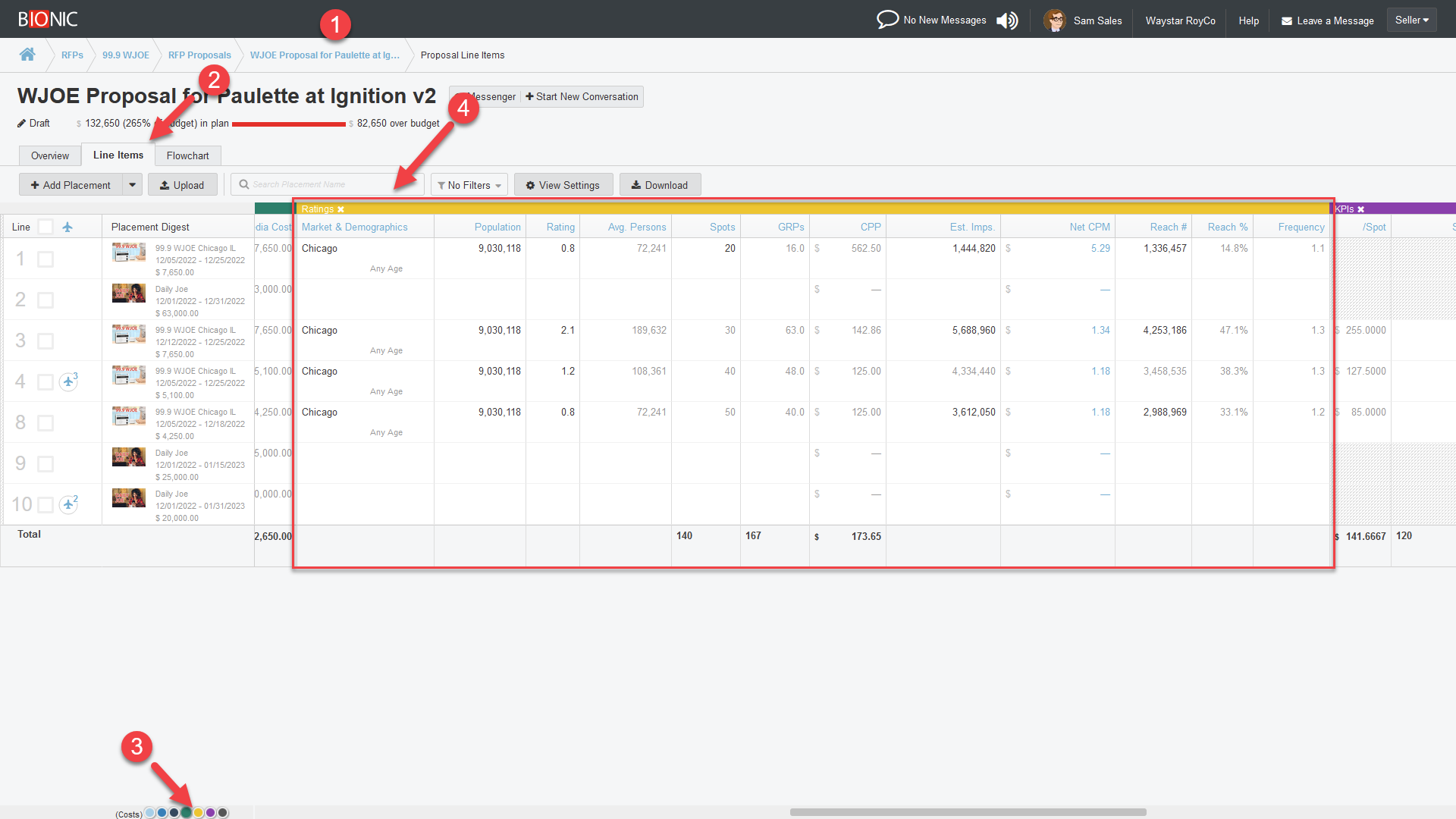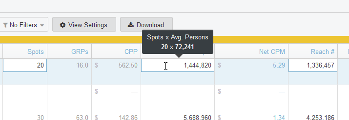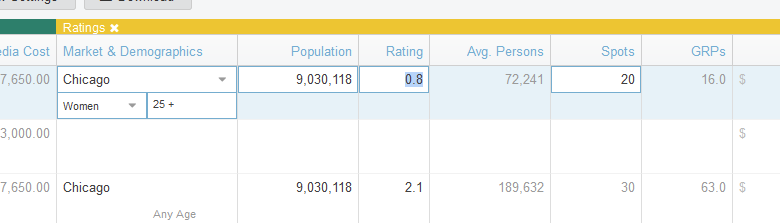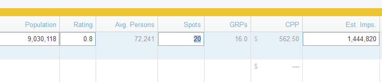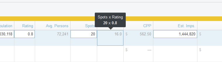 Bionic will automatically calculate Gross Ratings Points (GRPs) based on the number of spots and rating.