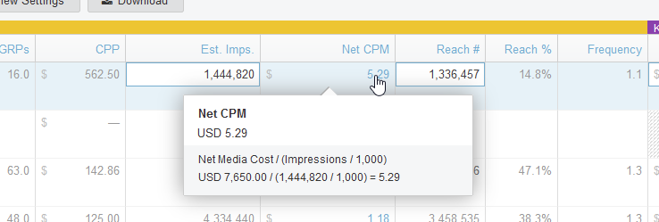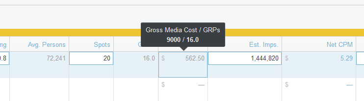 Bionic will automatically calculate Cost Per Point (CPP) based on the Gross Media Cost and Gross Ratings Points.