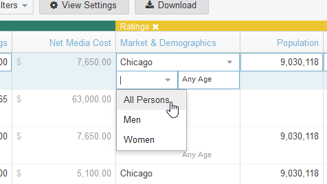 Note: The choices for gender are limited by the ratings service associated in the market.