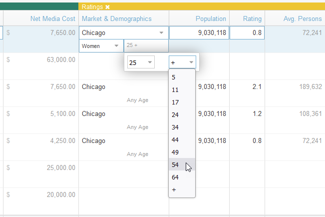 Note: The choices for age ranges are limited by the ratings service associated in the market.