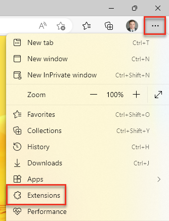 - Click the three horizontal dots, then select Extensions.