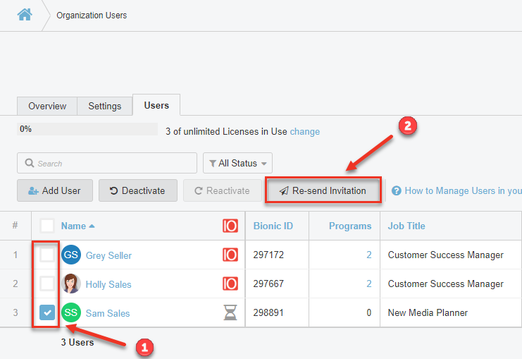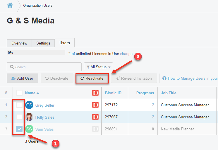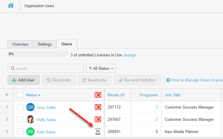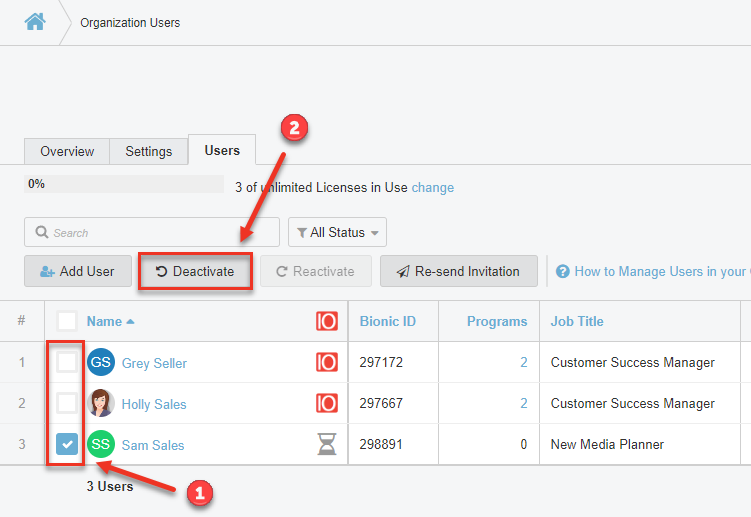 Once deactivated, the user will no longer be able to access Bionic for Ad Sales.