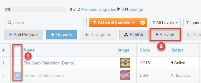 - Place a check mark next to the Program(s) you want to activate. Use the checkbox at the top to select all displayed Programs.