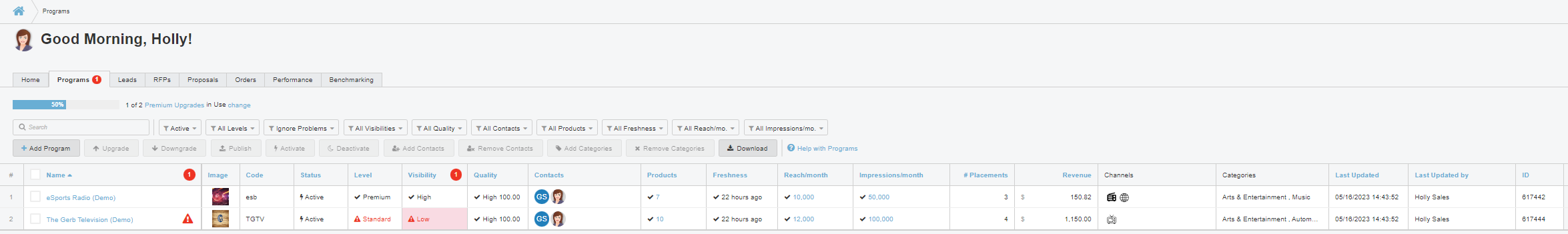 Your Programs in Bionic are like "media kits on steroids." You use programs to promote your advertising inventory.