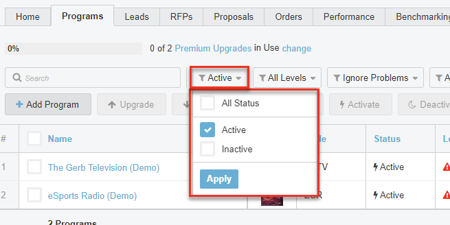 Note: Media buyers use your programs to send you RFPs and to place orders. It's important for you to keep your programs up-to-date.