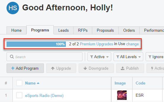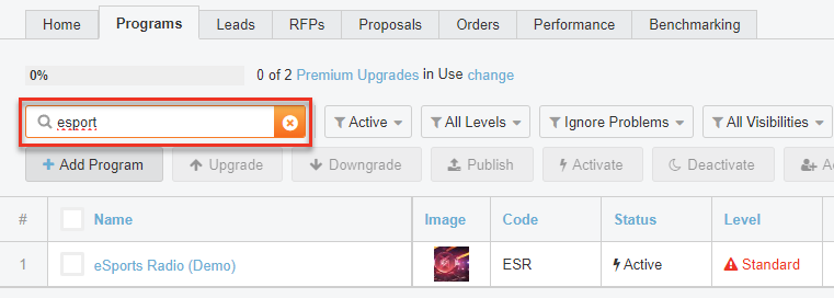 You will be able to search for or filter your listings, edit, add, & deactivate programs, set programs to Premium or Standard listings, and view program details.