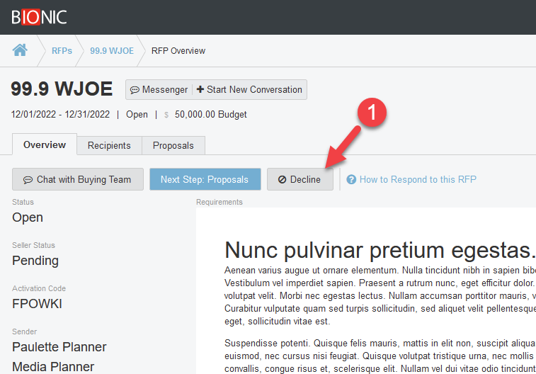 5. If you don't want to respond, Decline the RFP.