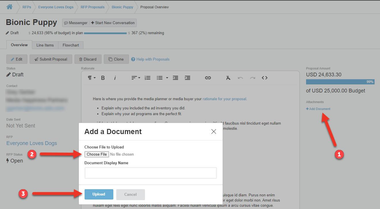 1. From the Overview tab on your Proposal, click Add Document