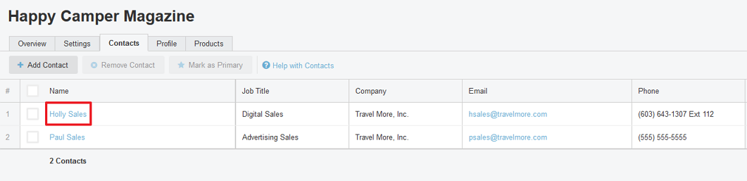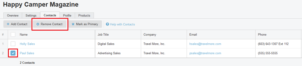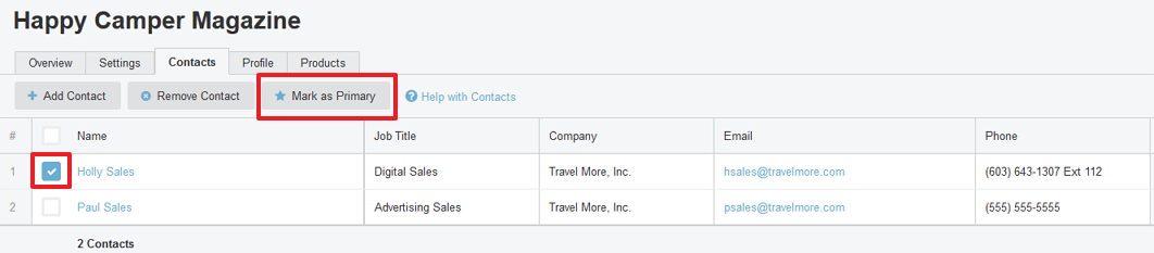 - Select the primary contact by placing a check in the box next to 1 of the contacts.