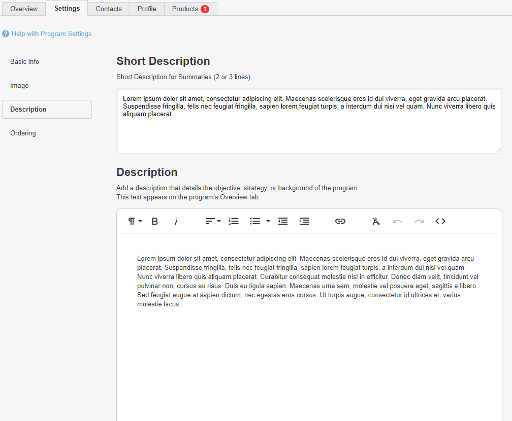 There are 2 description fields in a Program's settings. The first is a quick summary used more as a preview. The second description is your detailed description. Media planners will use this description to better understand what you are all about and how it may relate to their desired audience.